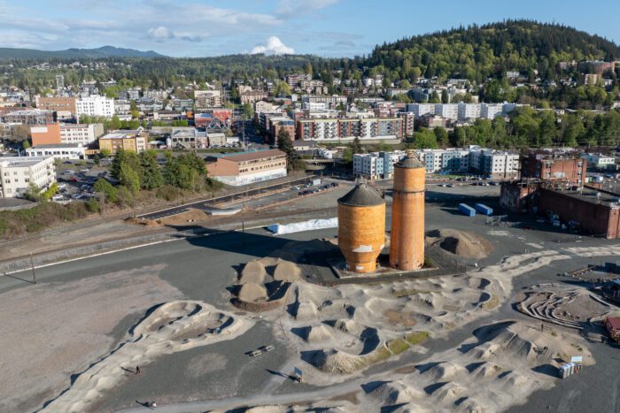 Above: An aerial drone shot by our pilot, Ken, showcasing the Bellingham Waterfront development area and its surrounding landscape during our shoot with UMC and Corix.